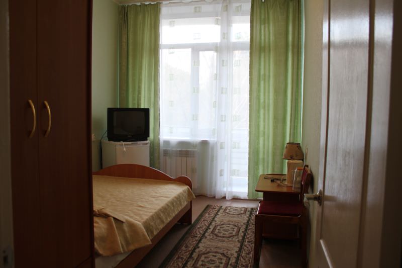 2 осн. места. 1 доп. место. Балкон. Мебель: кровать двуспальная, столик журнальный, шкаф. Оборудование: телевизор, холодильник. Санузел: с душем, фен. Сервис: смена полотенец, смена постельного белья, уборка номера.