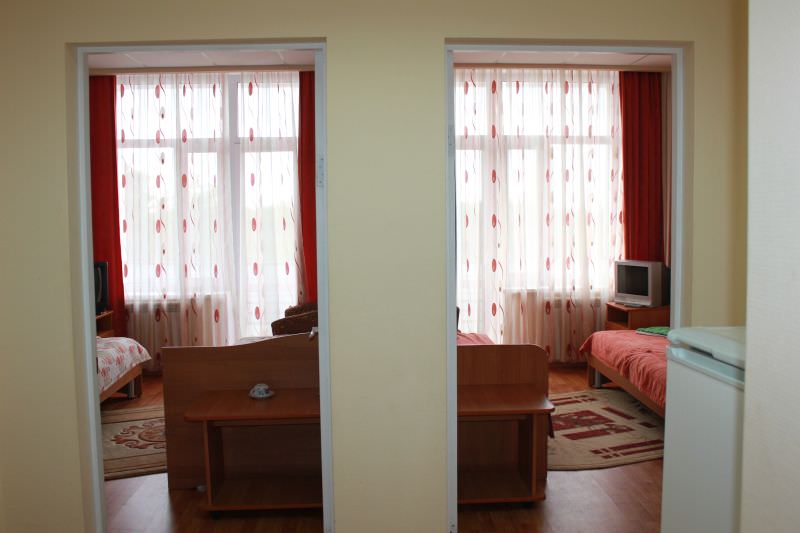 2 осн. места. Балкон. Мебель: кровати односпальные, прикроватные тумбочки, шкаф. Оборудование: телевизор, холодильник. Санузел на блок. Сервис: смена полотенец, смена постельного белья, уборка номера.